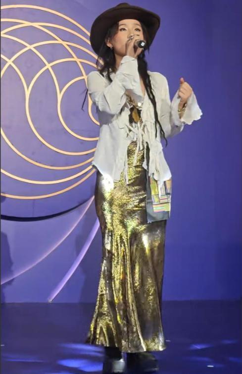前段时间凭着古装剧小火一把的她,本想借晚宴再圈波粉,成果一条金色裹胸鱼尾裙穿在身上,活脱脱成了行走的晾衣架。